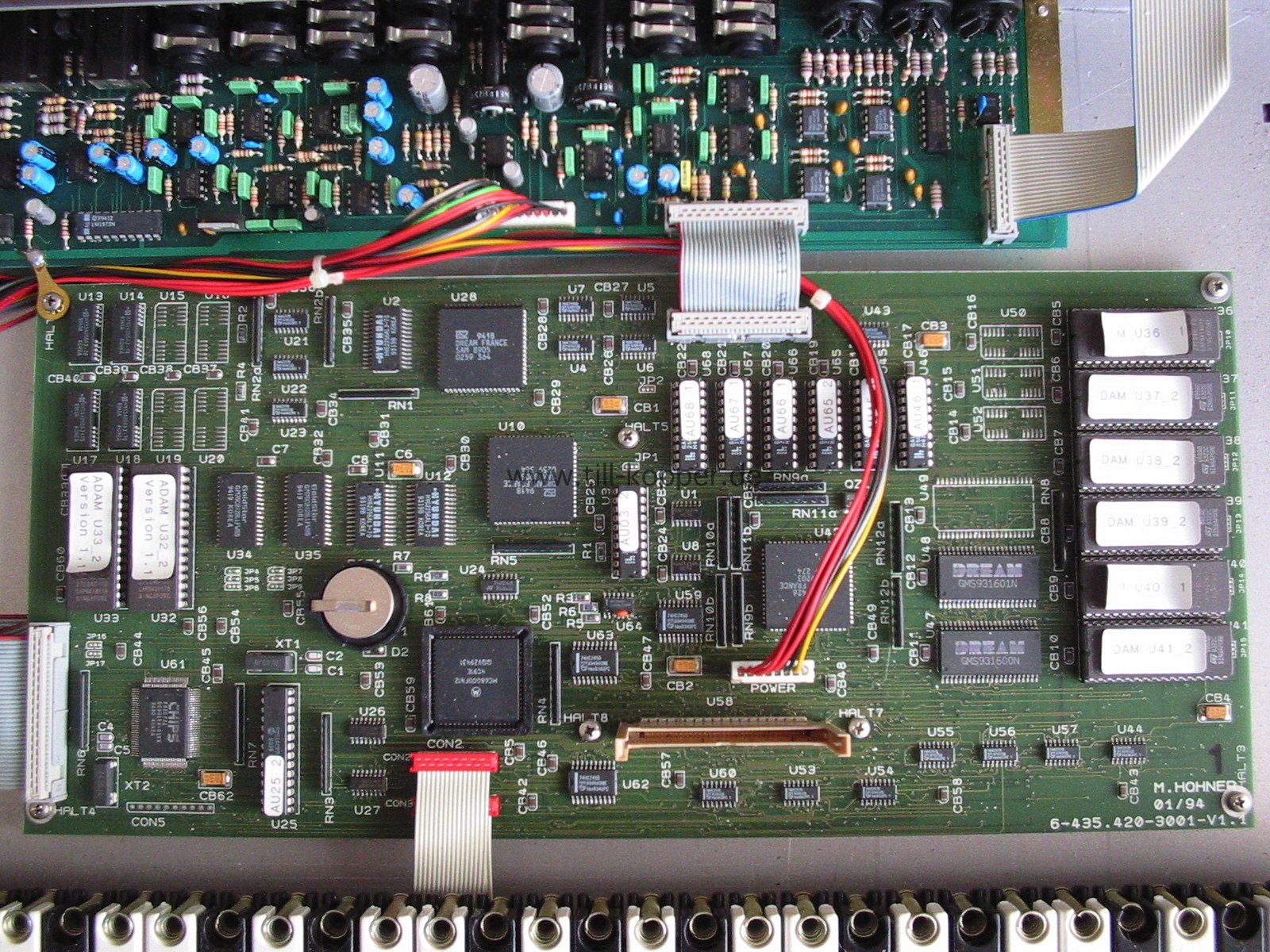 The sound engine use the france DREAM chips. You see the ROMs for the samples and the OS. And you see an 68000 CPU for handling the interface data and the disk and card. All boards are labeled Hohner. I am not sure who did the boards R&D, because Hohner wasn't into this kind of electronics that much.