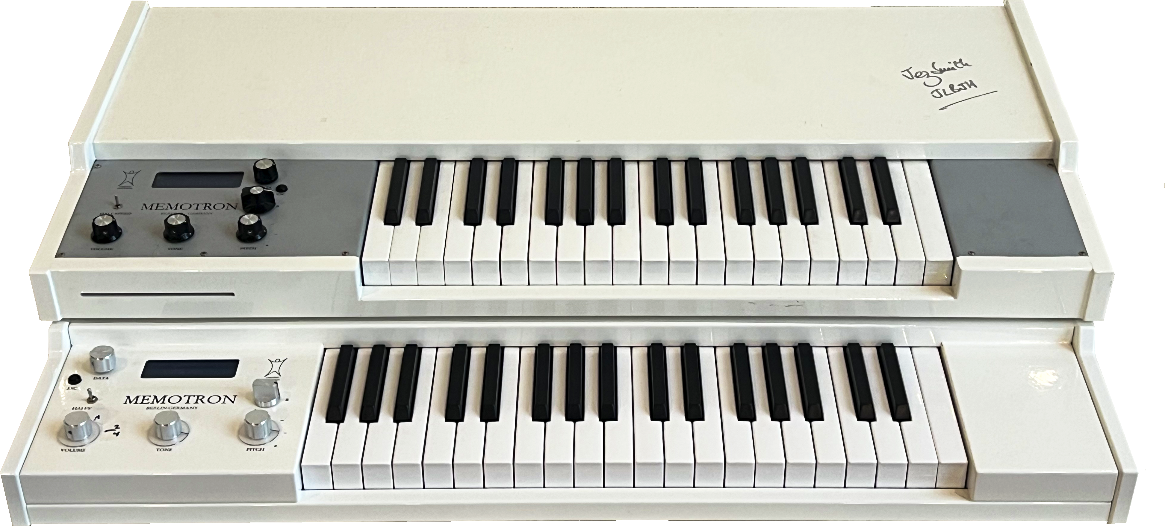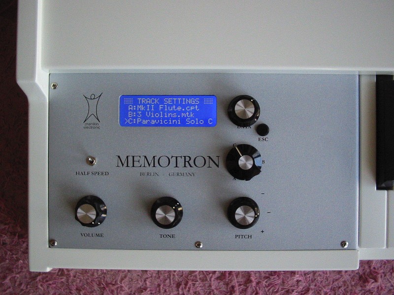 The Memotron MK II used only SD-Cards for sound storage. The loading of sounds or frames is way faster than on the original Memotron using optical drive or Compact Flash card). The keybed starts now with the F key. The original one had a special keybed starting with a G. In order to play the two new lower keys, the MK II Memotron does a digital transposing for only these two keys. Again no looping and per note multisamples (except the two additional bottom notes).